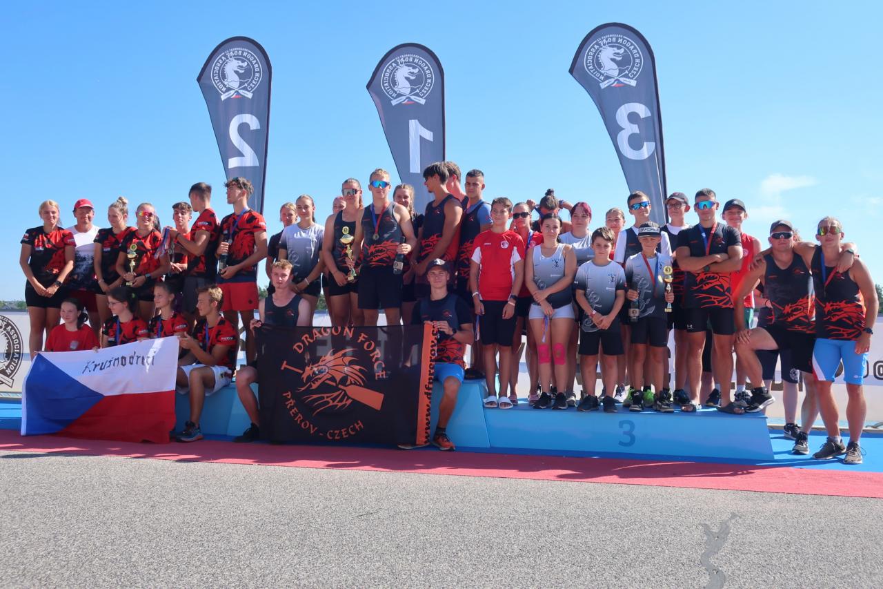 O víkendu 16. – 17. 9. 2023 se v Račicích konalo 18. mistrovství ČR dračích lodí. Síly zde poměřily také juniorské posádky. KOTVY Kvasice společně s Dragon Force Přerov a mladými draky z Dragonclubu Brno sestavili dvě posádky do desítkových lodí a tyto pak společně zasedly do lodí dvacítkových. Posádka „KOTVY FORCE“ vysbírala zlaté medaile ve dvacítkách na všech délkách tratí – 200 m, 500 m i 2000 m. V desítkách potvrdila titul Mistra Evropy posádka KOTVY FORCE A, která opět stanula na zlatých stupních v závodu na 200 m i 1000 m. Posádka KOTVY FORCE 1 pak stanula 2x na stupínku bronzovém. Tři naši dospěláci doplnili posádku KVS Draci Praha senior B, která se na pětistovkové trati postarala o senzaci dne, když porazila úřadující mistry Evropy Dragonteam Nymburk. Zadařilo se jim i na dvoukiláku, kde vyjeli bronzové medaile.
