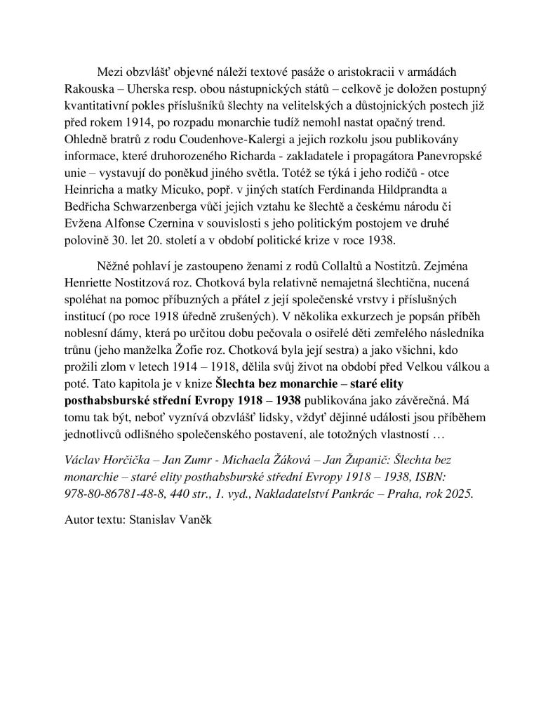 Vyšla kniha Šlechta bez monarchie, která souvisí i s obcí Kvasice