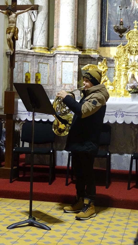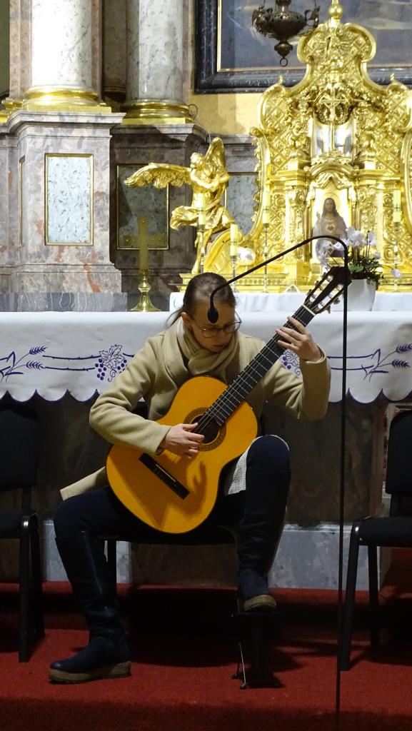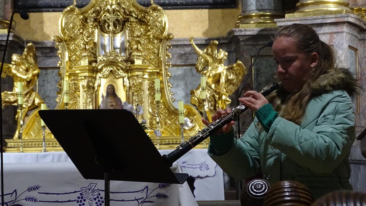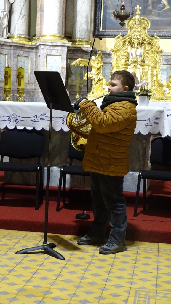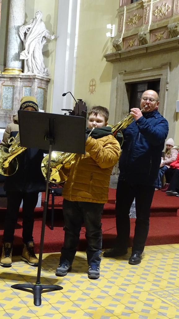 Fotografie z adventního koncertu pod taktovkou žáků ze ZUŠ Otrokovice (pobočka Kvasice).