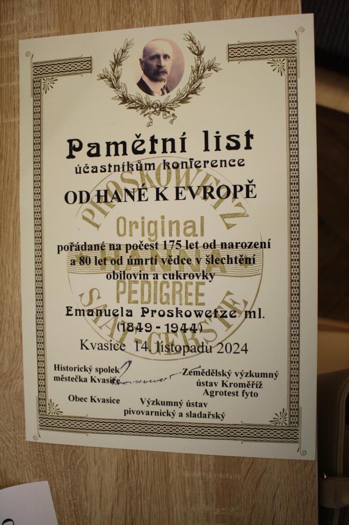 Historický spolek Kvasice, obec Kvasice, Zemědělský výzkumný ústav Kroměříž a Výzkumný ústav pivovarský a sladařský pořádali při příležitosti významných jubileí Emanuela Proskowetze ml. odbornou konferenci „Od Hané k Evropě: Historie a budoucnost šlechtění a pěstování ječmene“.