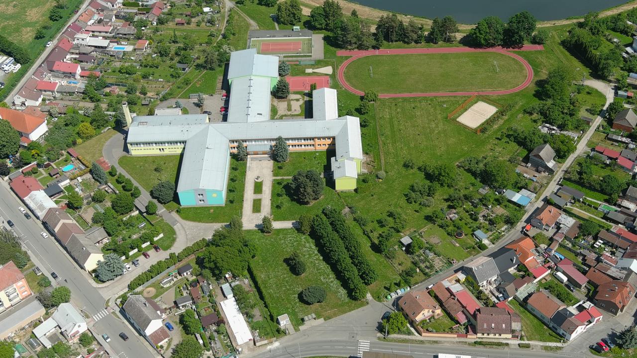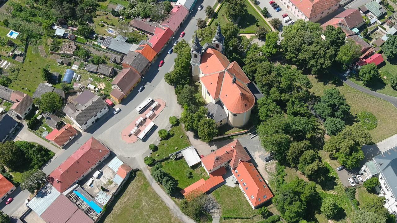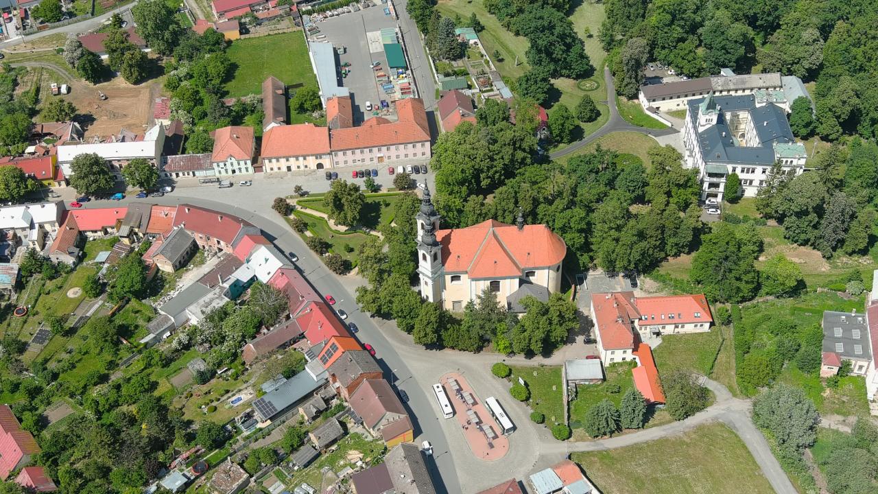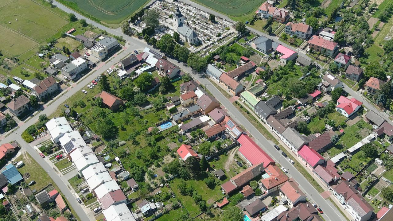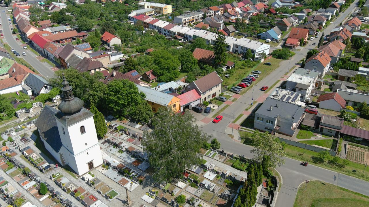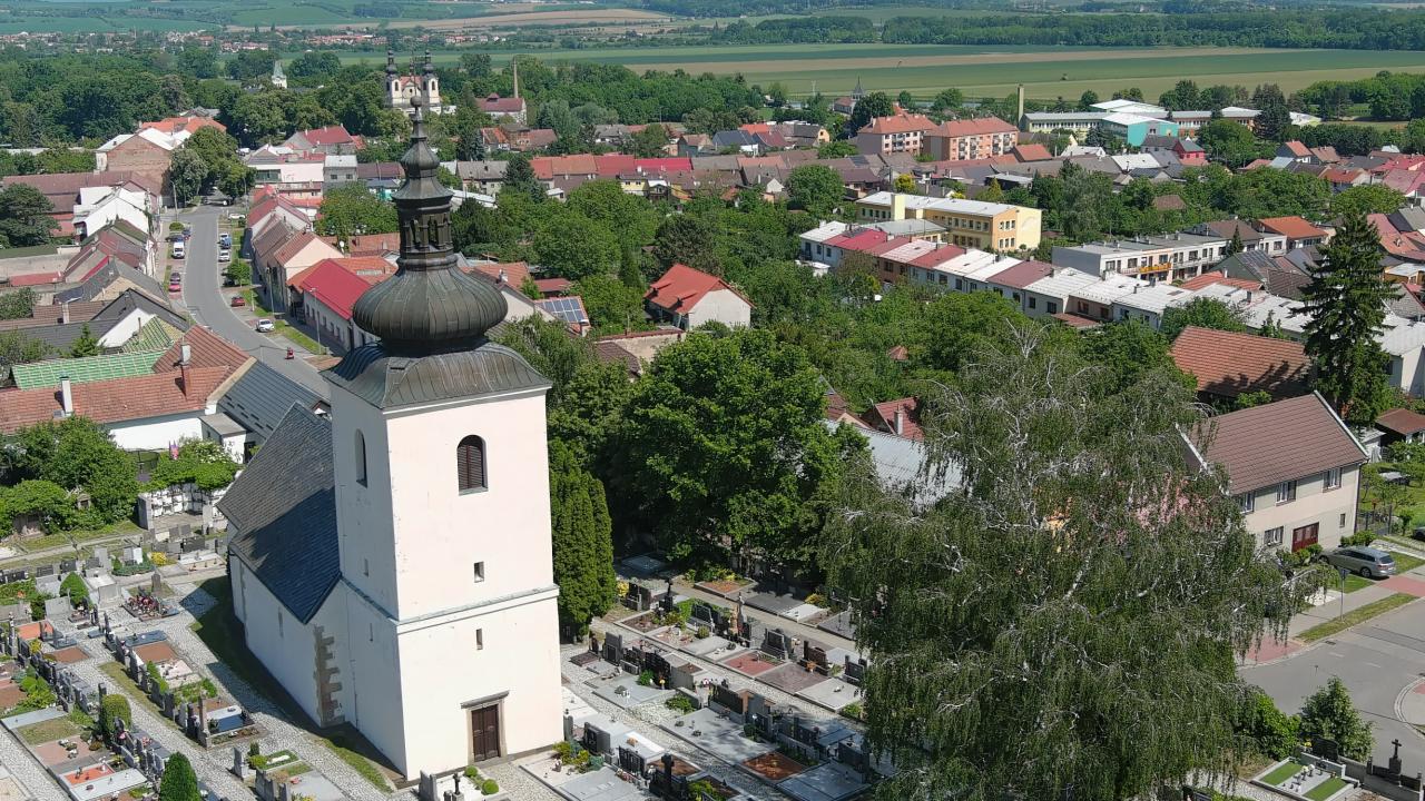 Pohled na městečko Kvasice z ptačí perspektivy.