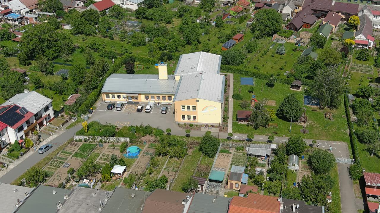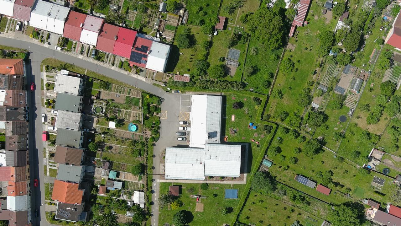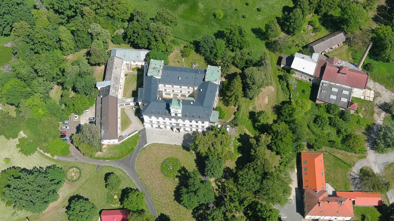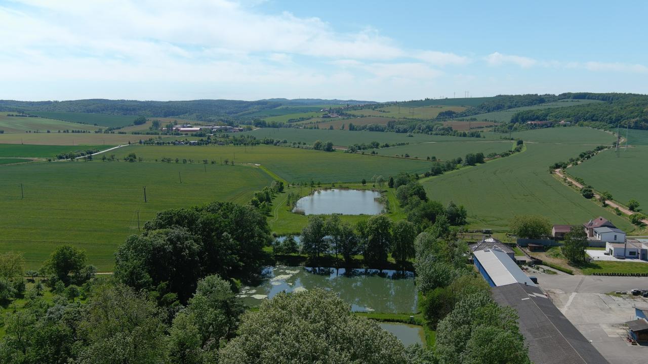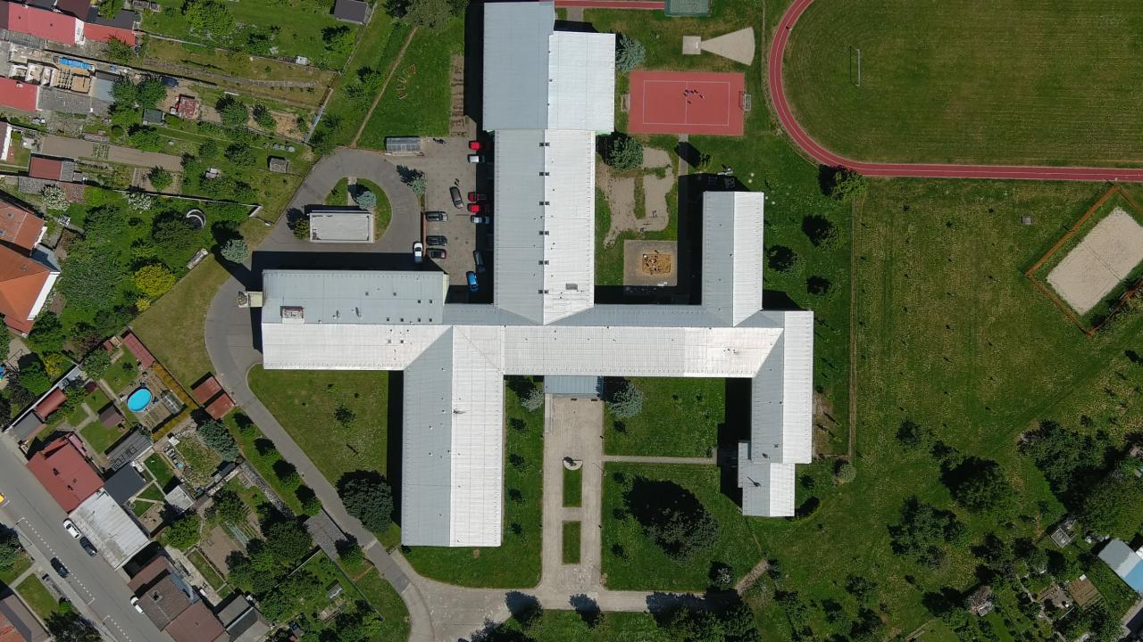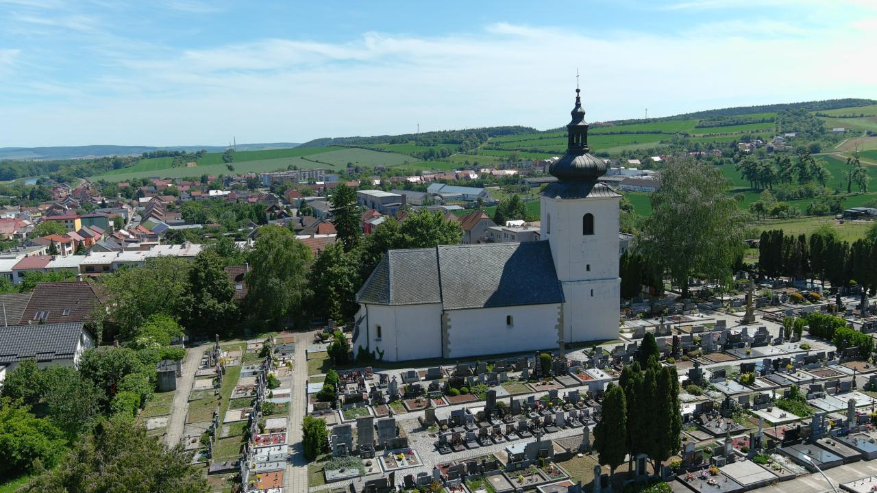 Pohled na městečko Kvasice z ptačí perspektivy.