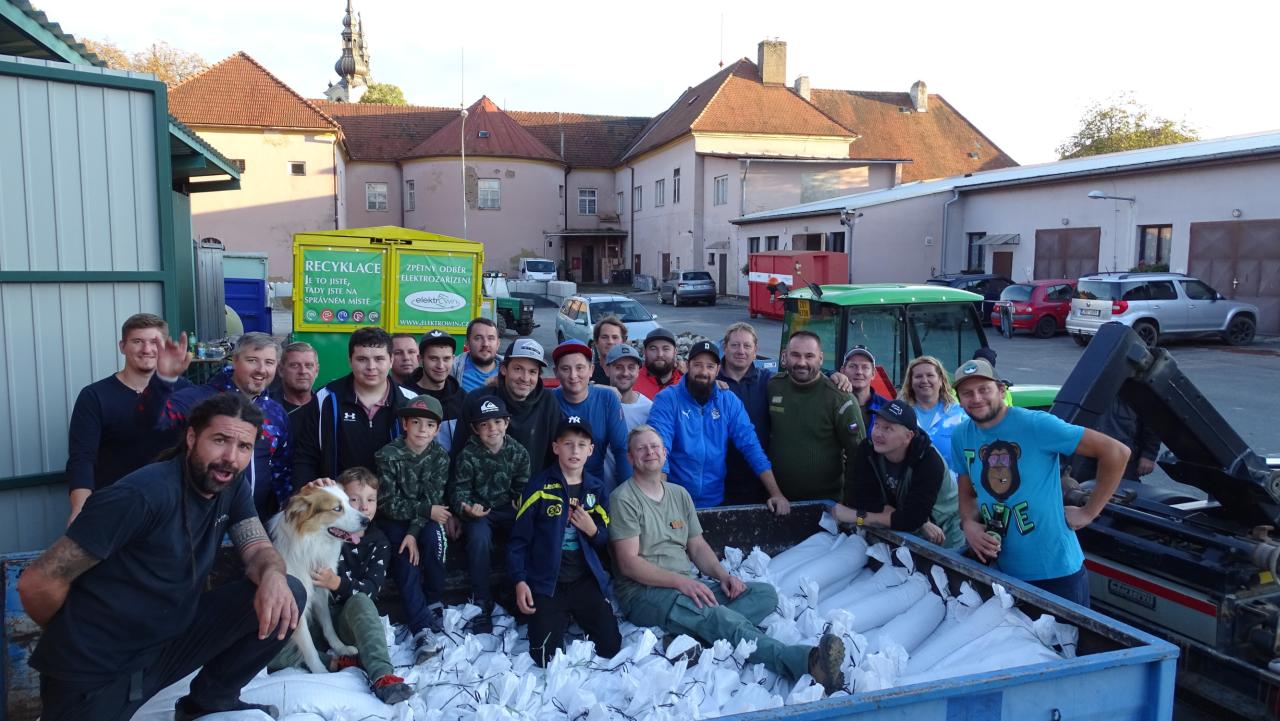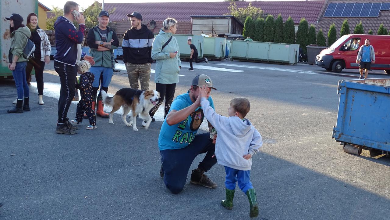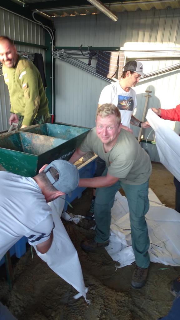 Fotografie dobrovolníků pomáhajících při povodních v roce 2024.