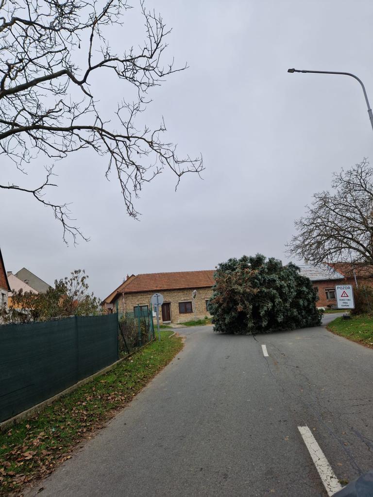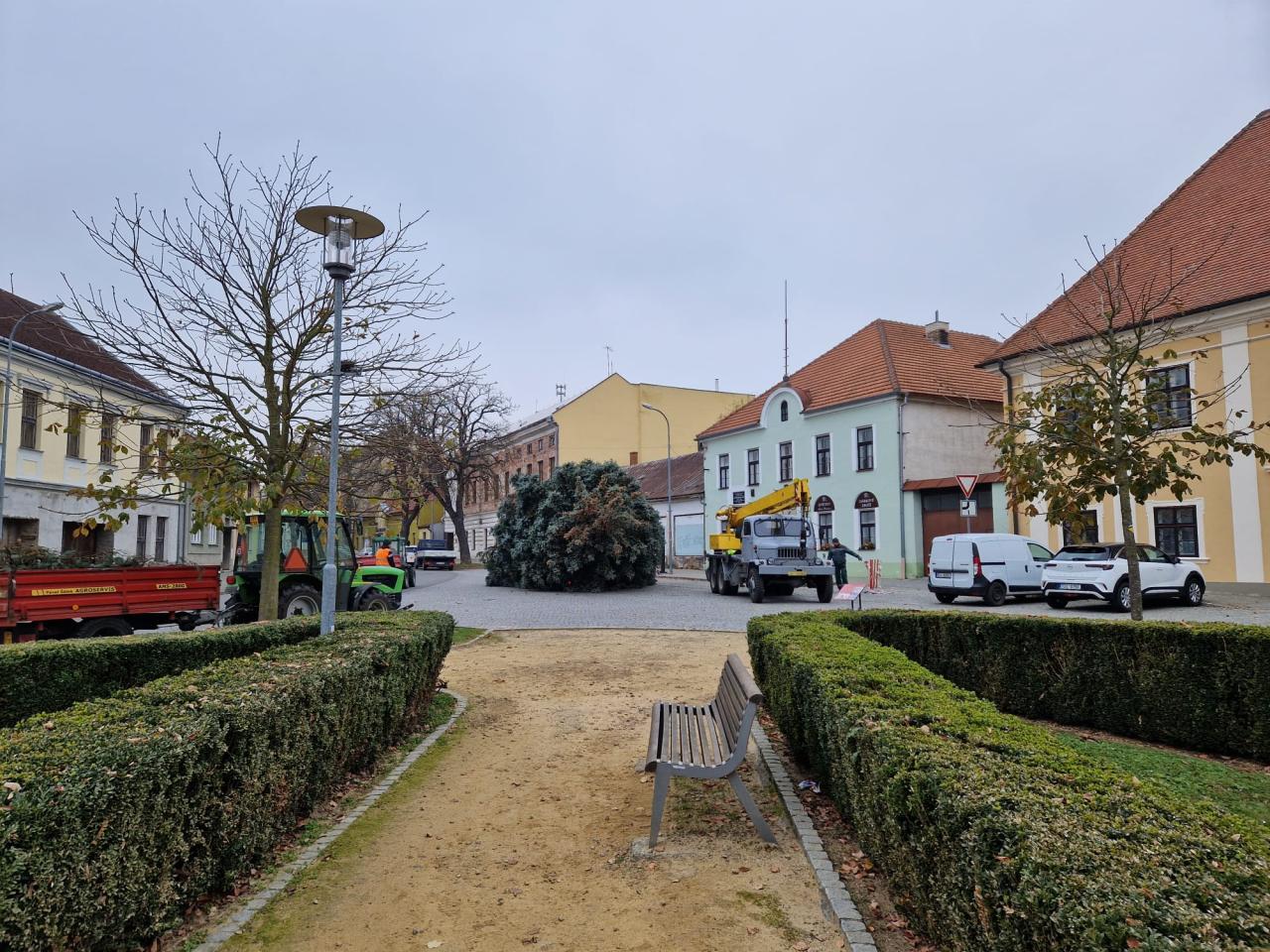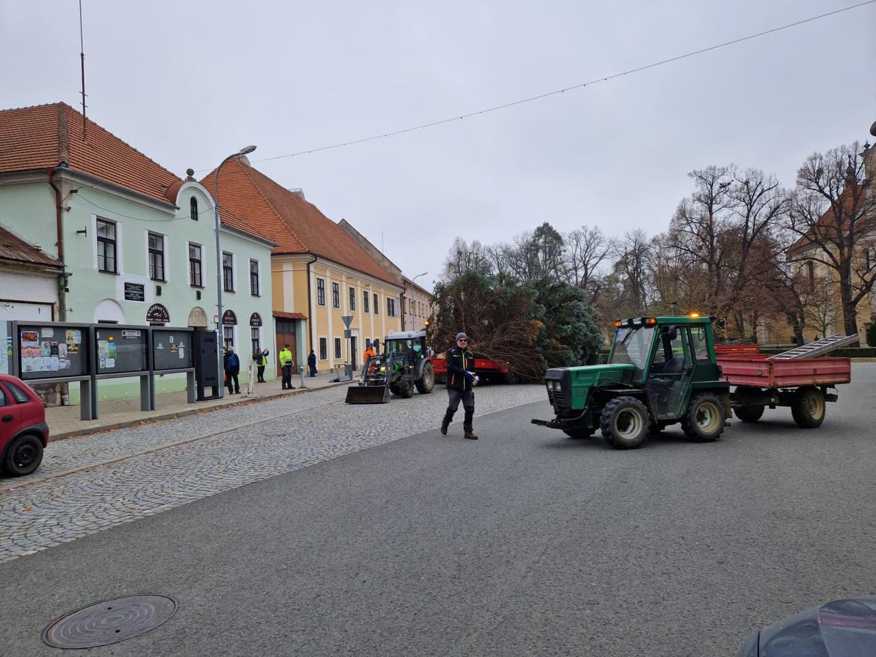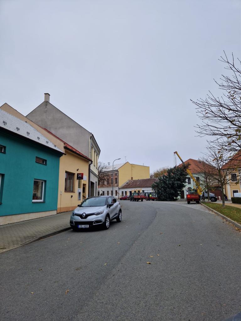 Stavění vánočního stromečku. Obec děkuje dárcům stromu, manželům Loučkovým z Bělovské ulice.