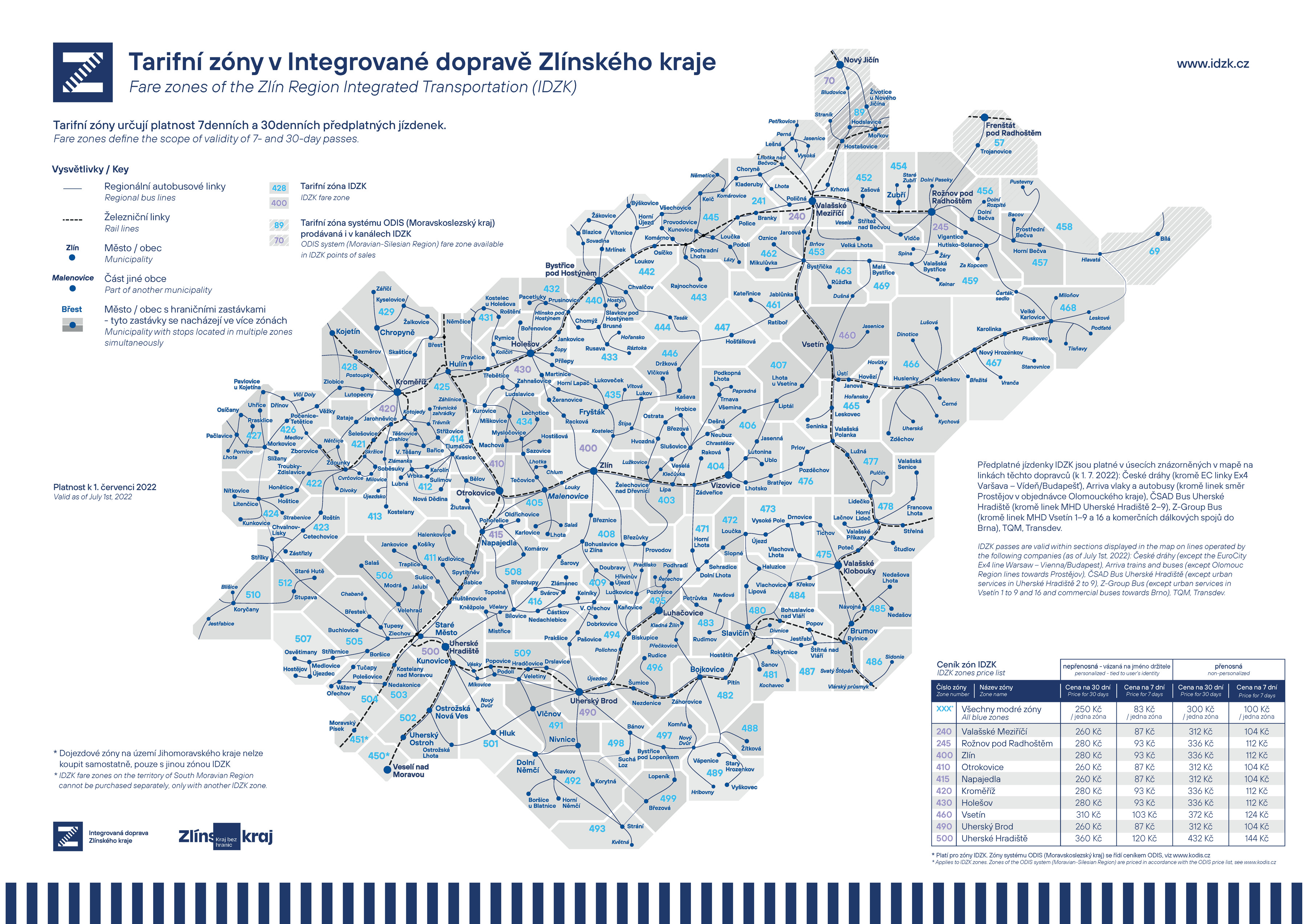 „Zavedení předplatných jízdenek předcházely v minulých měsících intenzivní přípravy, které spočívaly v rozdělení kraje na 98 zón. Cestující si tak budou pořizovat předplatné jízdenky na zóny, kterými se pravidelně pohybují cestou třeba do práce nebo do školy. Na území zakoupených zón se pak budou moci neomezeně pohybovat jak vlakem, tak autobusem,“ představuje změny náměstek hejtmana Zlínského kraje pro dopravu Radek Doležel a pokračuje: „Každá zóna má stanovenou cenu – výsledná cena předplatné jízdenky pak bude součtem zakoupených zón.“ U většiny zón cestující zaplatí 250,- Kč za třicet dní nebo 83,- Kč za sedmidenní jízdenku; deset zón zahrnujících větší města v kraji je dražších. Ceny jsou nastaveny tak, aby se třicetidenní jízdné většině cestujících vyplatilo už po zhruba 12 dnech, sedmidenní jízdné pak pátý den.